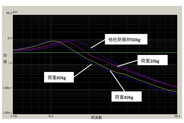 (他社防振材 荷重60kgの時 ⇒ 14.7Hz)