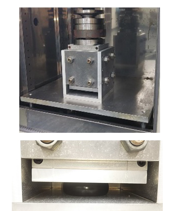 ・専用治具に防振材PL00をセットし、規定荷重をかける