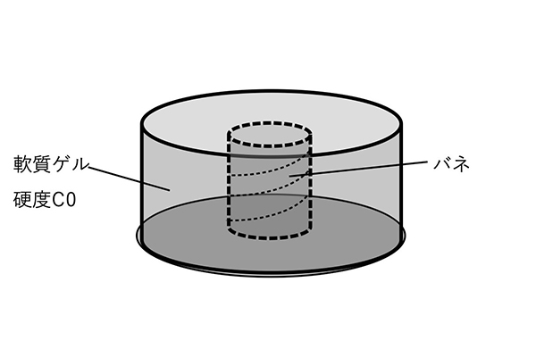 軟らかいゲルの内部にバネを埋め込み、大きな揺れの低周波振動、微振動のような高周波振動を抑制します。